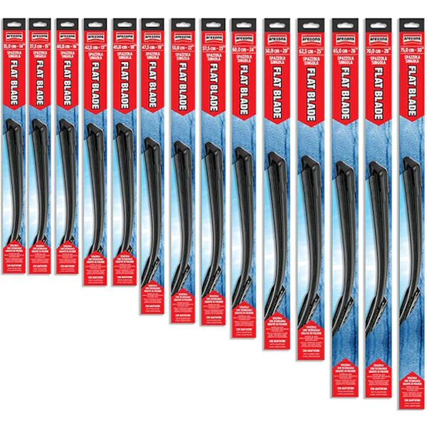 - Grazie al kit di adattatori incluso nelle confezioni, le spazzole Flat Blade possono sostituire sia i tergicristallo tradizionali che le spazzole di nuova generazione, coprendo circa il 90% del parco circolante.