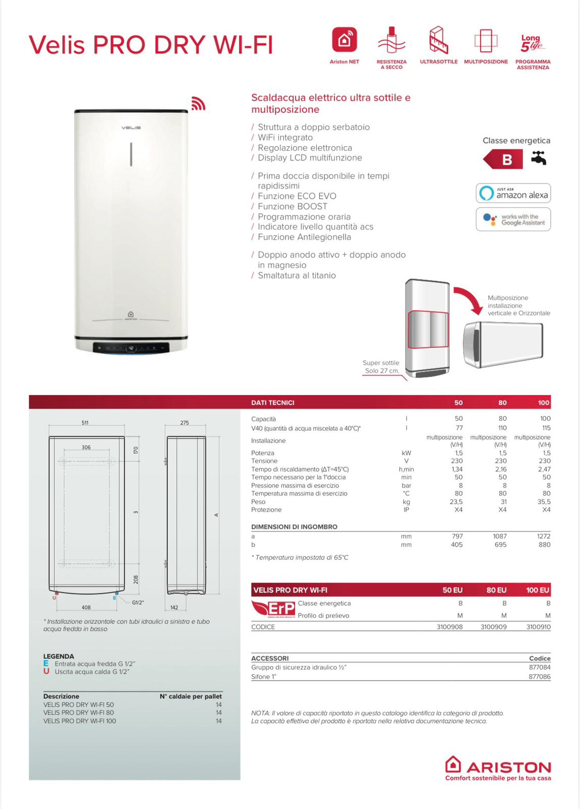 ARISTON SCALDACQUA ELETTRICO 80LT VELIS DRY WIFI 80 3100909