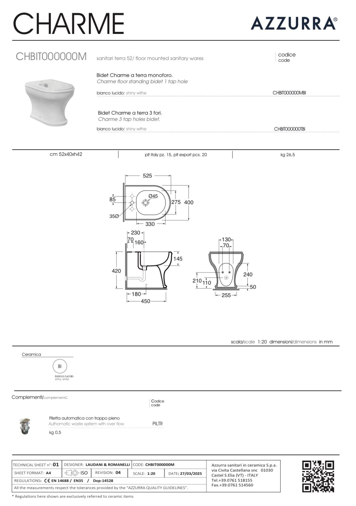 AZZURRA BIDET CHARME MONOFORO DA TERRA