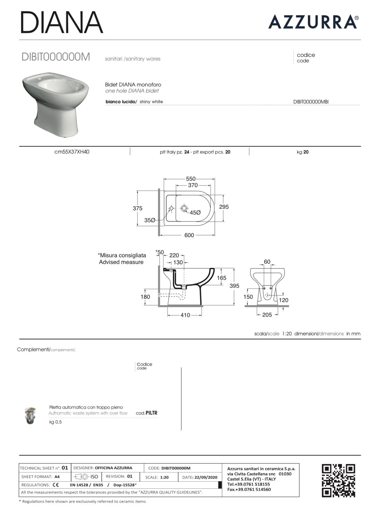 Realizzato in ceramica sanitaria di alta qualità, il bidet garantisce resistenza, affidabilità ed elevati standard igienici. Le superfici lisce e compatte facilitano la manutenzione quotidiana, offrendo comfort e praticità nell’uso.