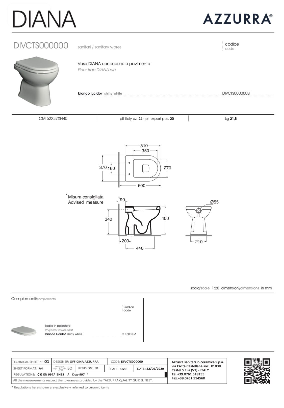 Azzurra propone la serie Diana  per offrire una linea di sanitari in ceramica dal costo contenuto e dalla qualità ricercata. La linea è sviluppata in conformità con il programma Azzurra sul risparmio idrico al fine di produrre dei sanitari ecologici e di prima qualità, offrendo un notevole risparmio per il cliente finale.