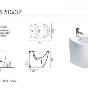 Dimensioni: circa 50 cm (larghezza) × 37 cm (profondità), misura standard per bidet da bagno moderno.