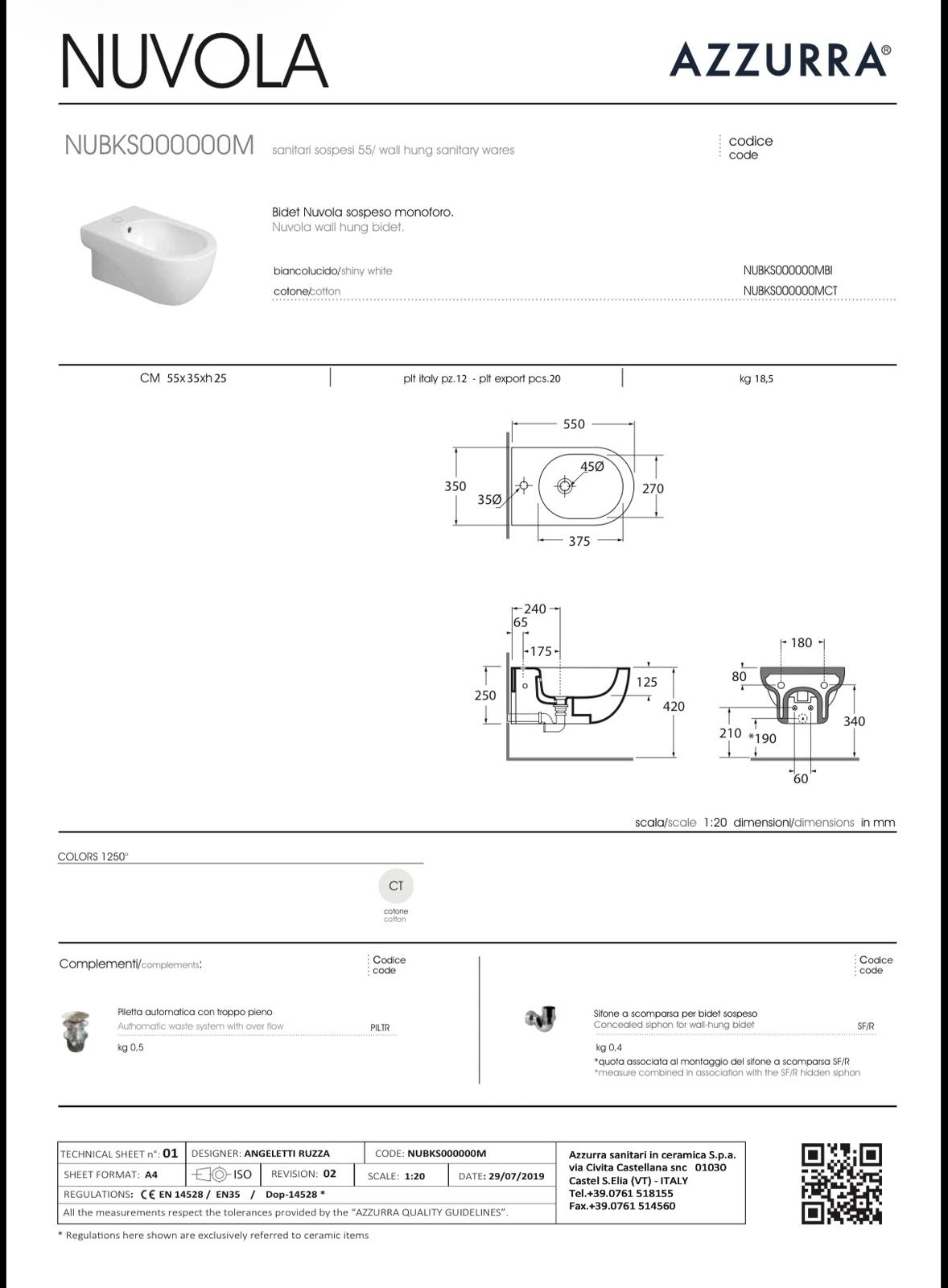 • Tipologia di prodotto: Bidet sospeso