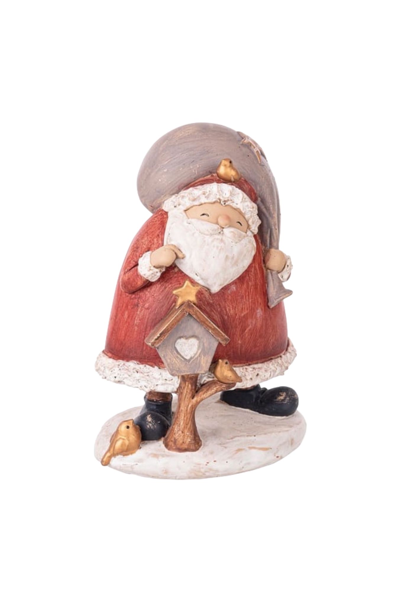 Le finiture curate e i tocchi di bianco effetto neve donano alla figura un aspetto caldo e autentico, perfetto per arricchire mensole, tavoli o vetrine natalizie con un tocco di allegria.