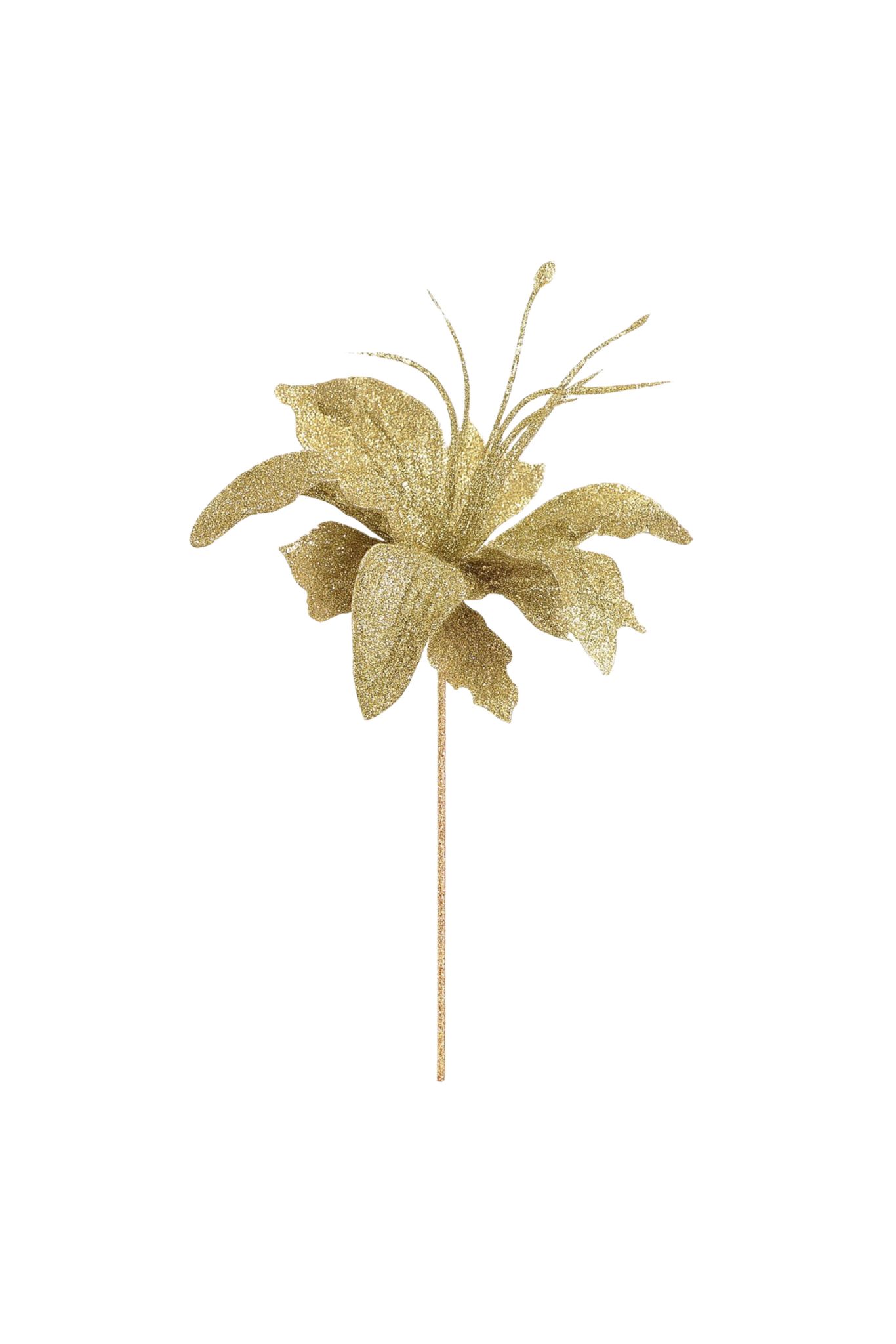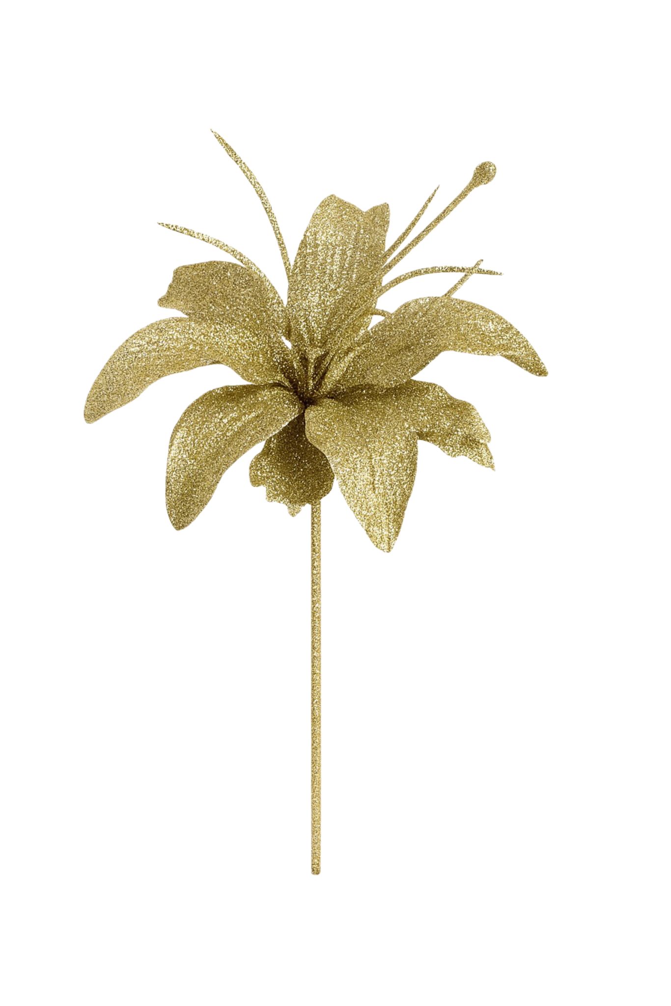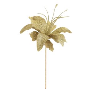 Design elegante e prezioso: giglio dorato con dettagli glitterati per un effetto luminoso e raffinato.