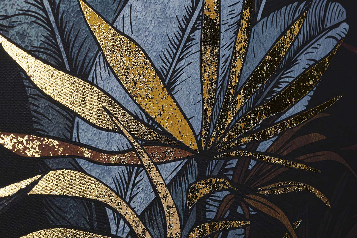 Quadro C-C Bold 919 82×122 by Bizzotto è una bellissima stampa di design su tela con applicazioni ad olio e fogli dorati e struttura in MDF a motivi fogliari.