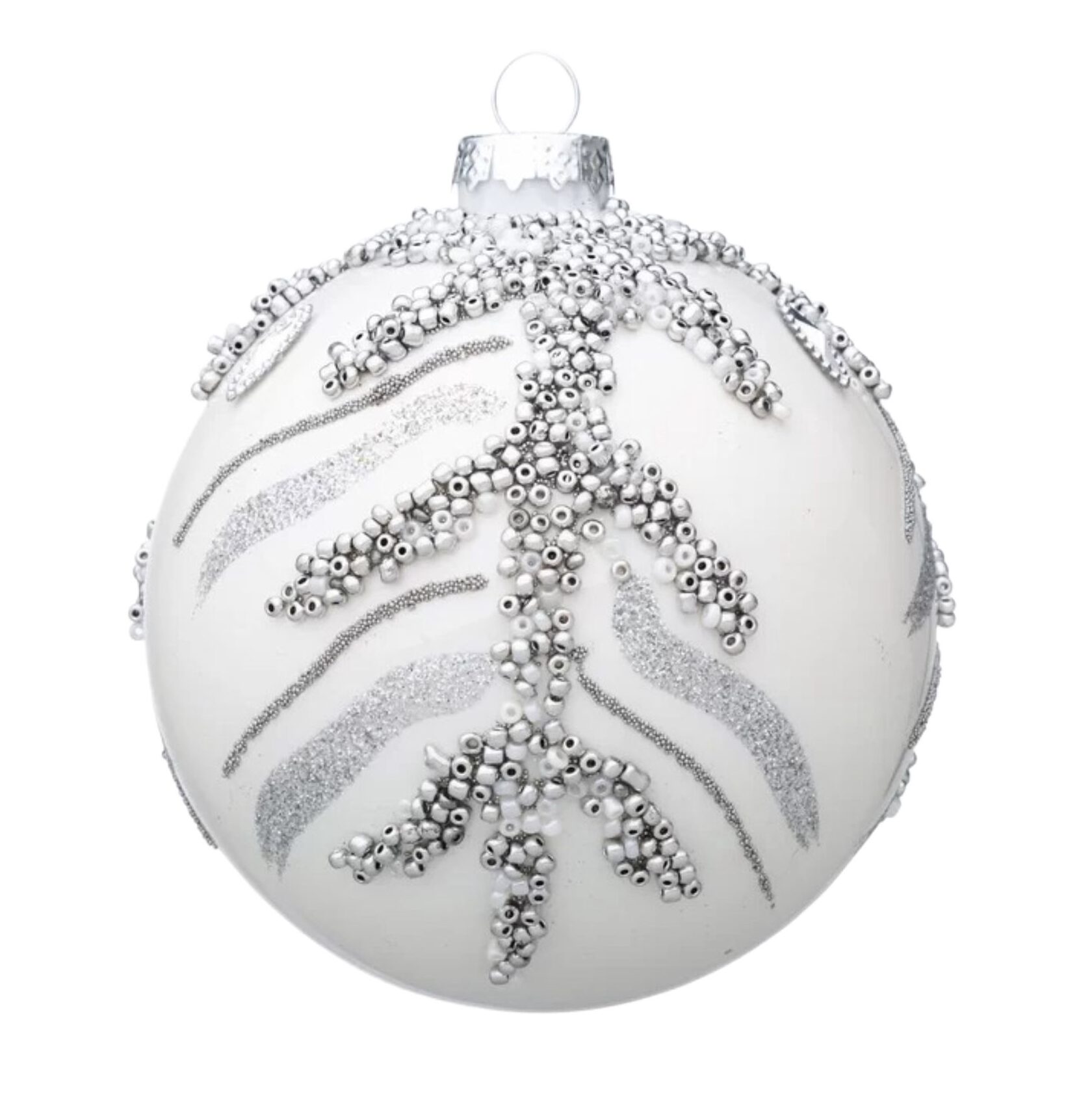 BIZZOTTO SFERA NATALE IN VETRO BIANCA GLITTER ARGENTO D80 0930642