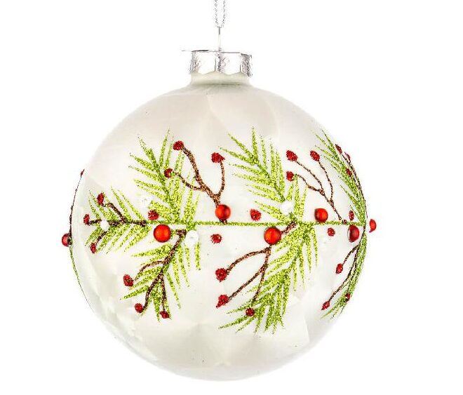 BIZZOTTO SFERA NATALE VETRO BRANCH BIANCO