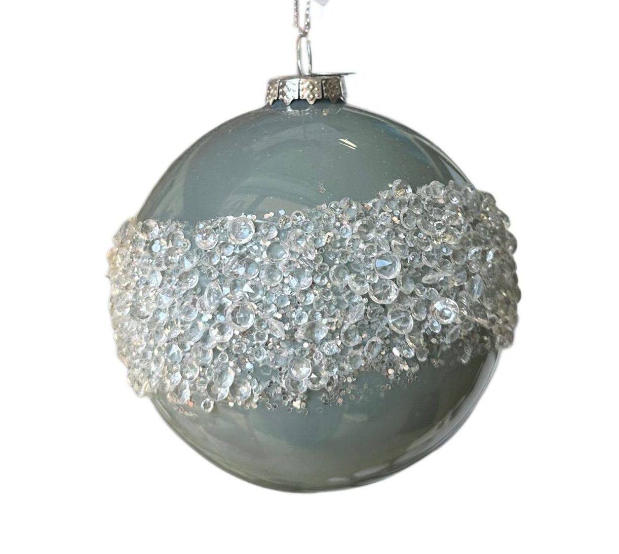 Sfera natalizia realizzata in vetro con all’interno bacche e neve