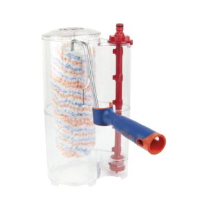 Il lava rulli, consente la pulizia agevole di qualsiasi rullo inserito al suo interno, senza bisogno di rimuovere il manico, oltre a consentire un risparmio di circa 80% in acqua.