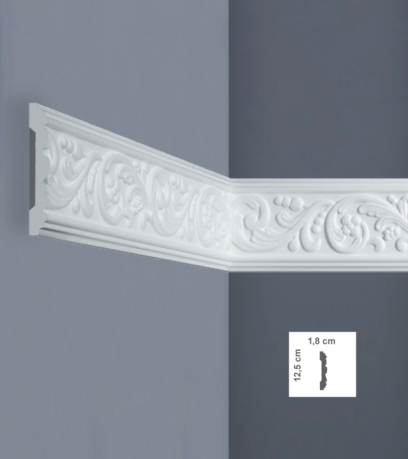 Decoro in polistirene, consente la rifintura di qualsiasi ambiente in maniera originale ed elegante. Indicata per valorizzare ulteriormente gli ambienti interni e conferire piacevoli e particolari stili di design. Importante complemento d’arredo, viene realizzato in polistirene autoestinguente classe 1