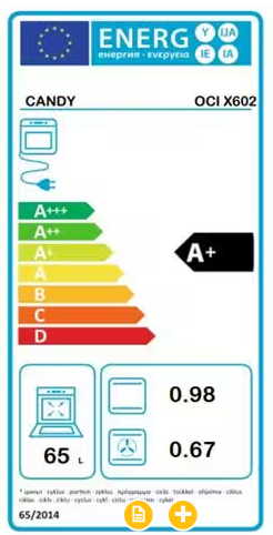 CANDY FORNO ELETTRICO INCASSO 65 Litri CLASSE A+ OCI X602 INOX