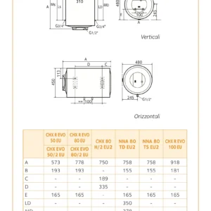 CHAFFOTEAUX SCALDACQUA 80LT 2 ANNI VERT. COD.3201153 CHX EVO 80/2