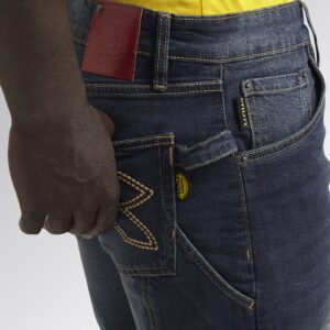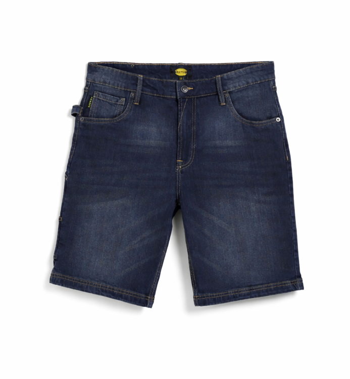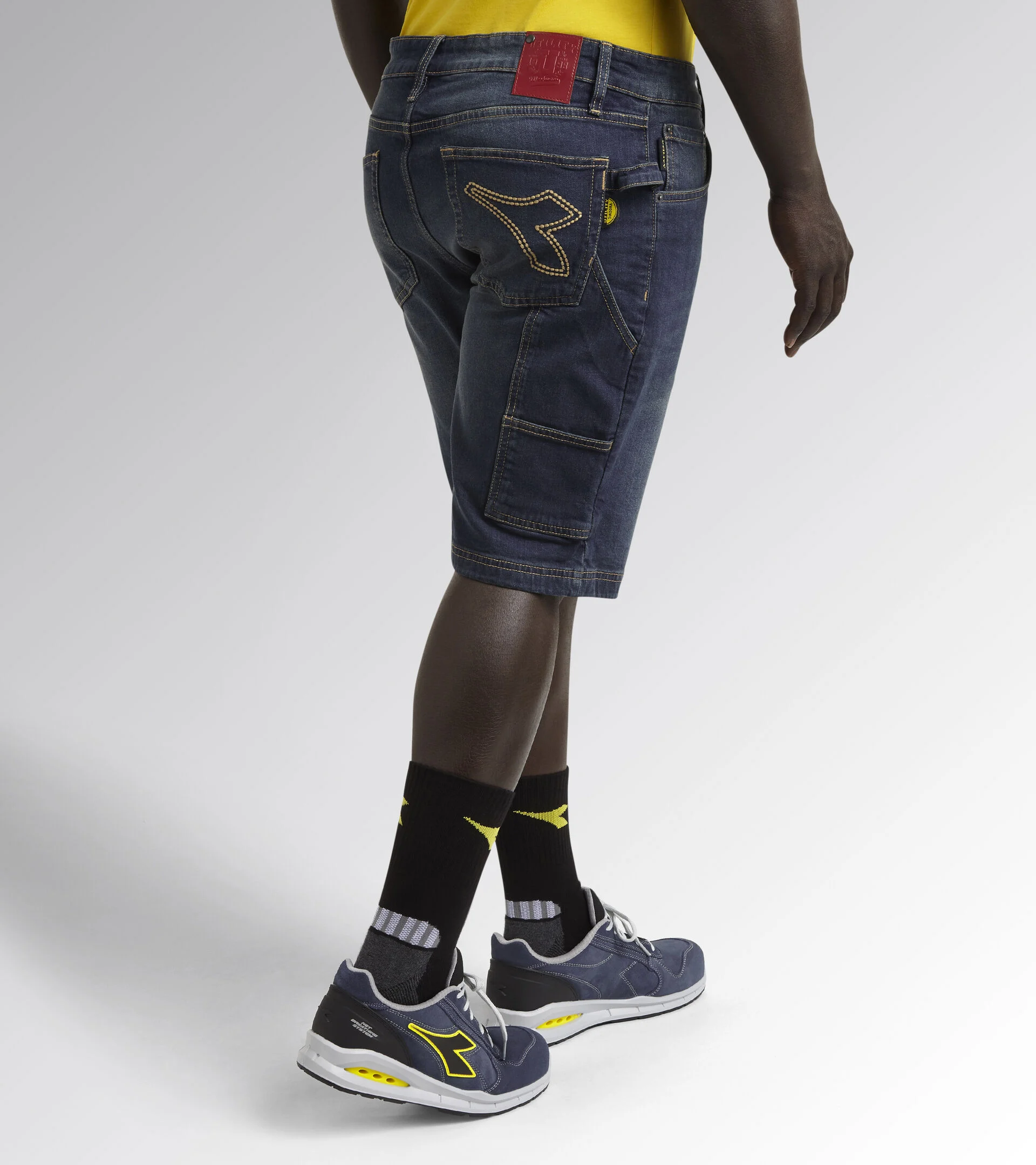 Bermuda denim stretch, portamartello, tasca portametro, lavaggio stone wash.