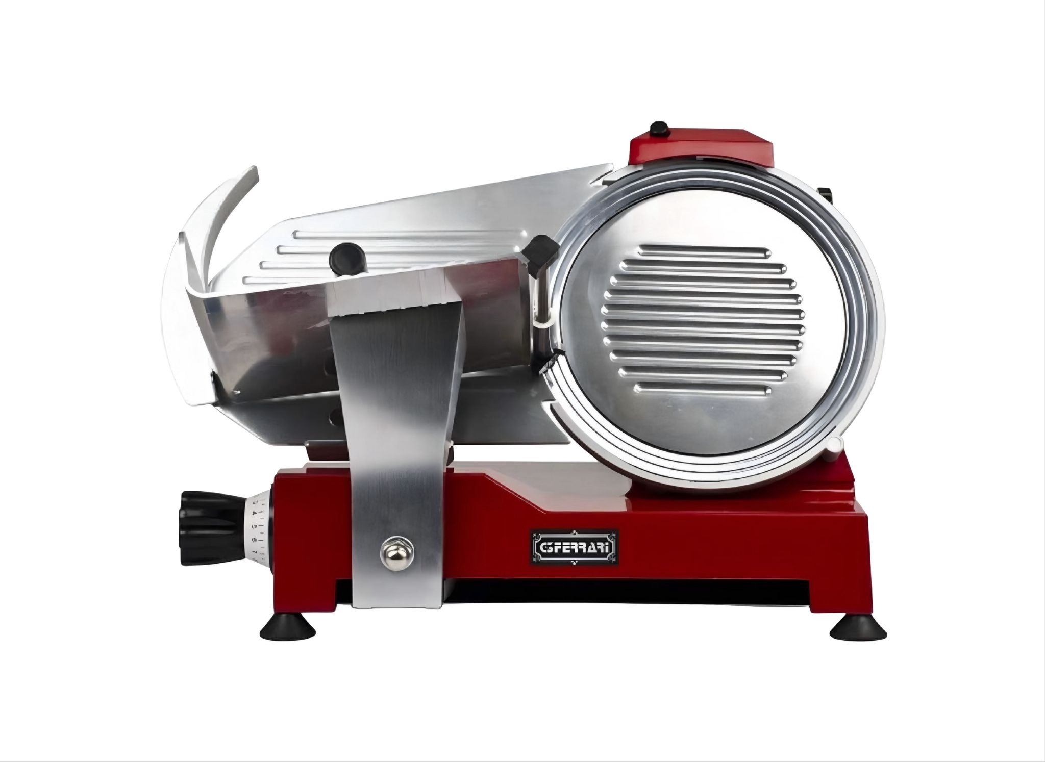 Affettatrice elettrica professionale g3 ferrari emilia 275 g20086 rosso con lama in acciaio inox da 27,5cm spessore taglio 0-16mm 180 watt.