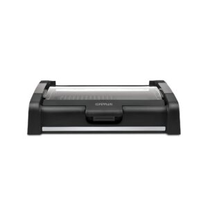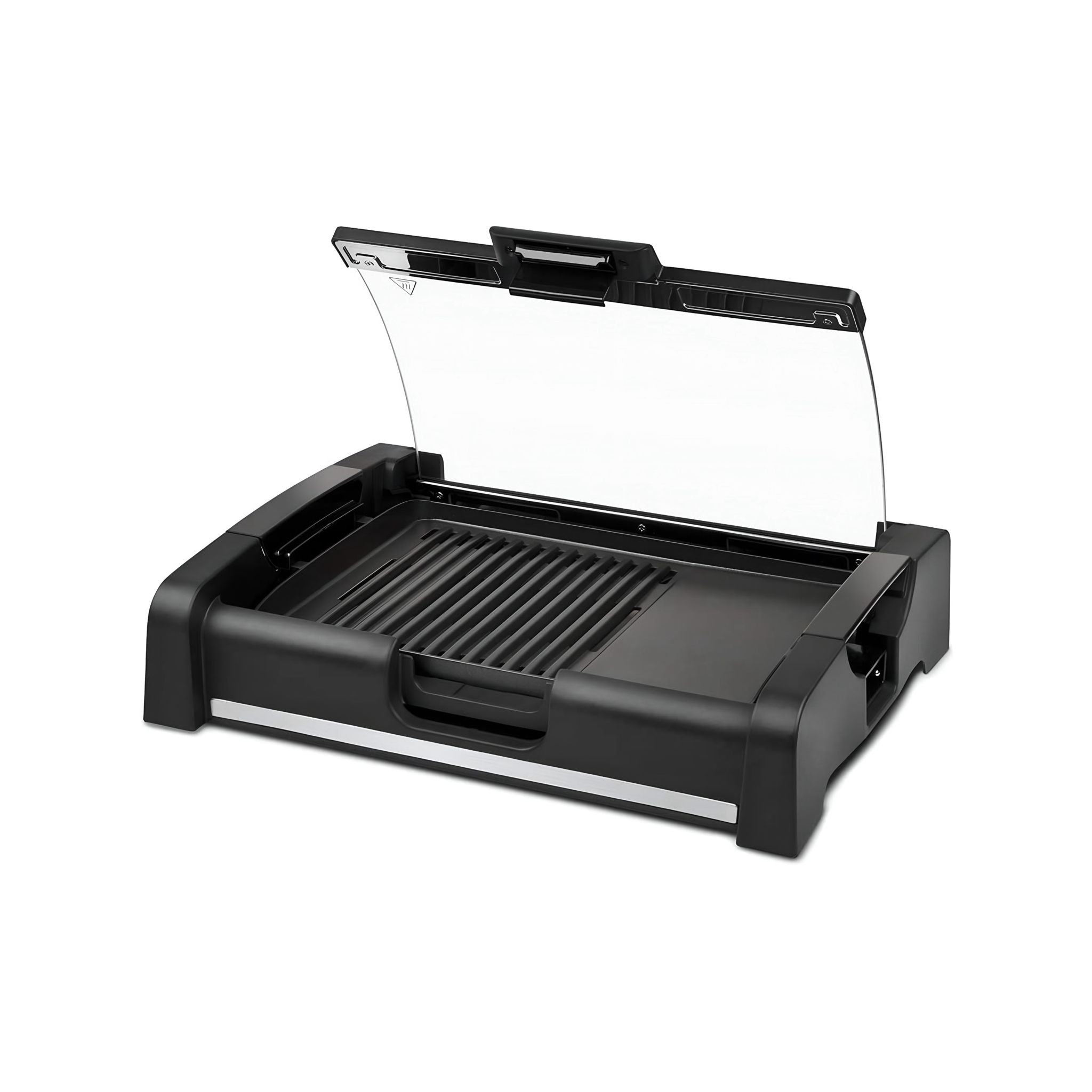 Con Gratella potrete soddisfare la vostra voglia di grigliare tutto l’anno: che sia carne, pesce o verdure, con questo barbecue elettrico otterrete sempre ottimi risultati. L’ampia superficie di cottura da 35.5 x 25.5 cm è abbastanza grande da cuocere un pasto per tutta la famiglia; la piastra in materiale antiaderente vi permetterà un doppio utilizzo: liscia per grigliare e rigata per funzione barbecue. La resistenza annegata nella piastra garantisce una cottura senza cattivi odori ed una perfetta distribuzione del calore, e con l’aiuto del termostato regolabile, potrete adattare la temperatura ad ogni alimento. Il coperchio in vetro temperato permette una cottura protetta: sarete al sicuro da schizzi di olio e grasso e potrete cuocere anche al freddo, poiché il calore verrà mantenuto all’interno. Infine, questa unità è completamente smontabile per permettervi una pulizia facile e veloce.
