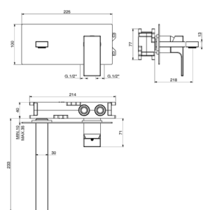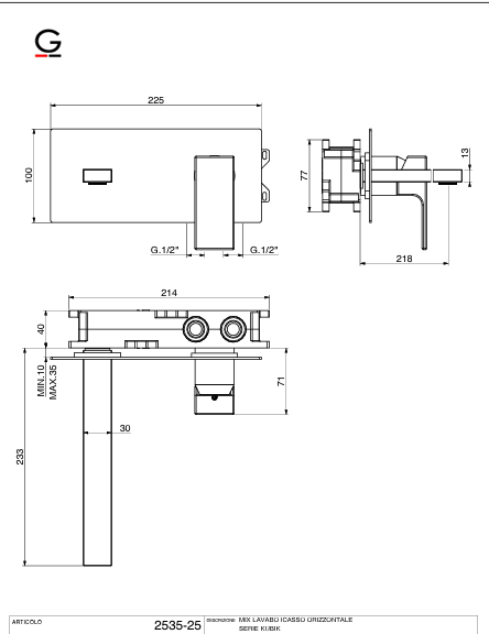 GATTONI KUBIK MISCELATORE LAVABO A MURO CROMO ART 2535/25C0
