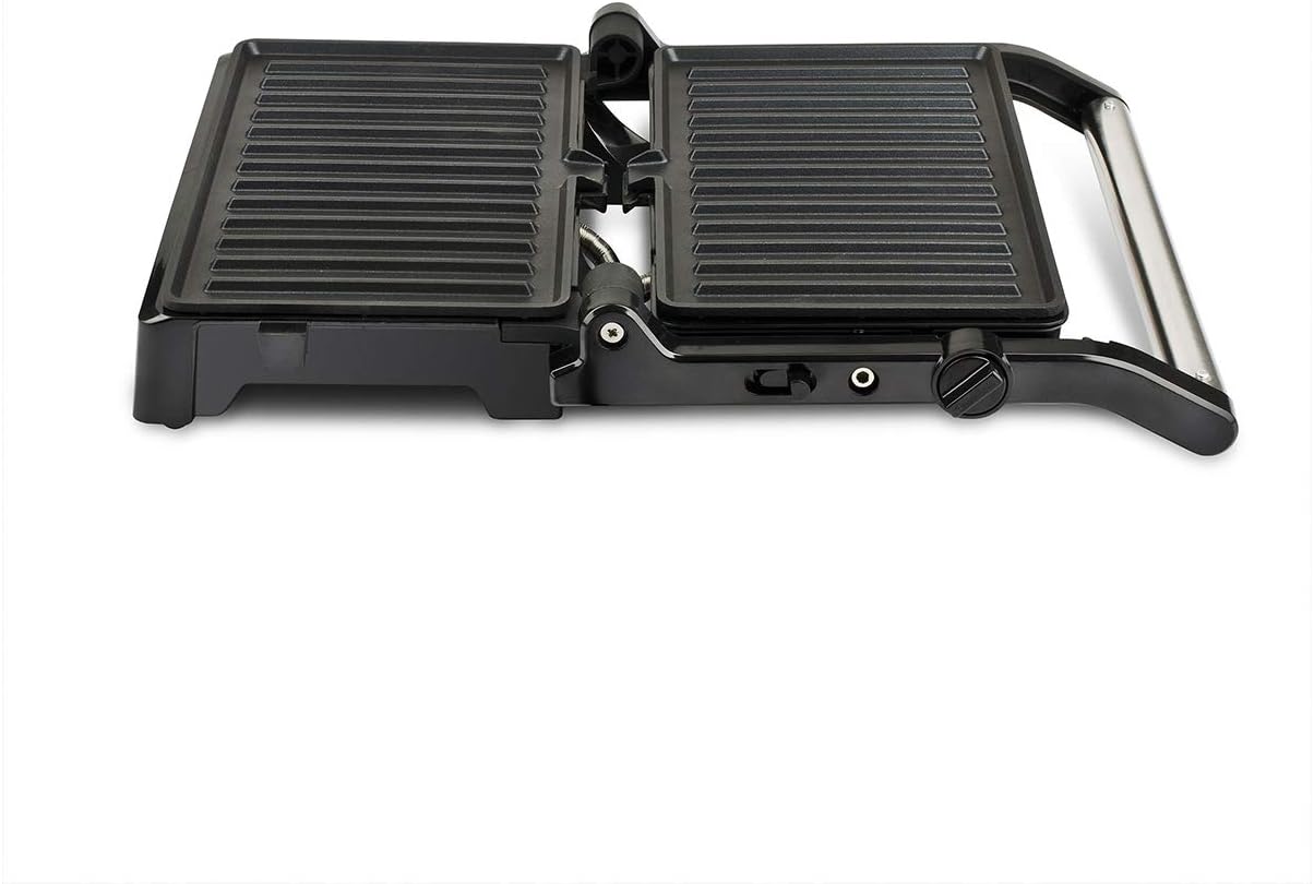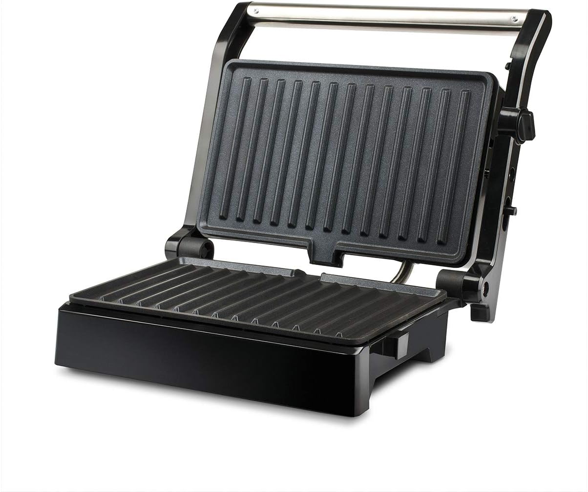 Dotata di un’ottima potenza di 1500 watt, la bistecchiera Ardor, grazie all’apertura a libro, può essere utilizzata sia come una tradizionale tostiera per la preparazione di gustosi sandwich, toast e panini americani oppure come una piastra per grigliare pesce e carne in pochi minuti. Dalle dimensioni compatte questa unità dispone di spie di funzionamento e raggiunta temperatura e di 2 piastre antiaderenti da 25 x 15.5 centimetri che garantiscono una cottura naturale, sana e senza aggiunta di senza grassi.