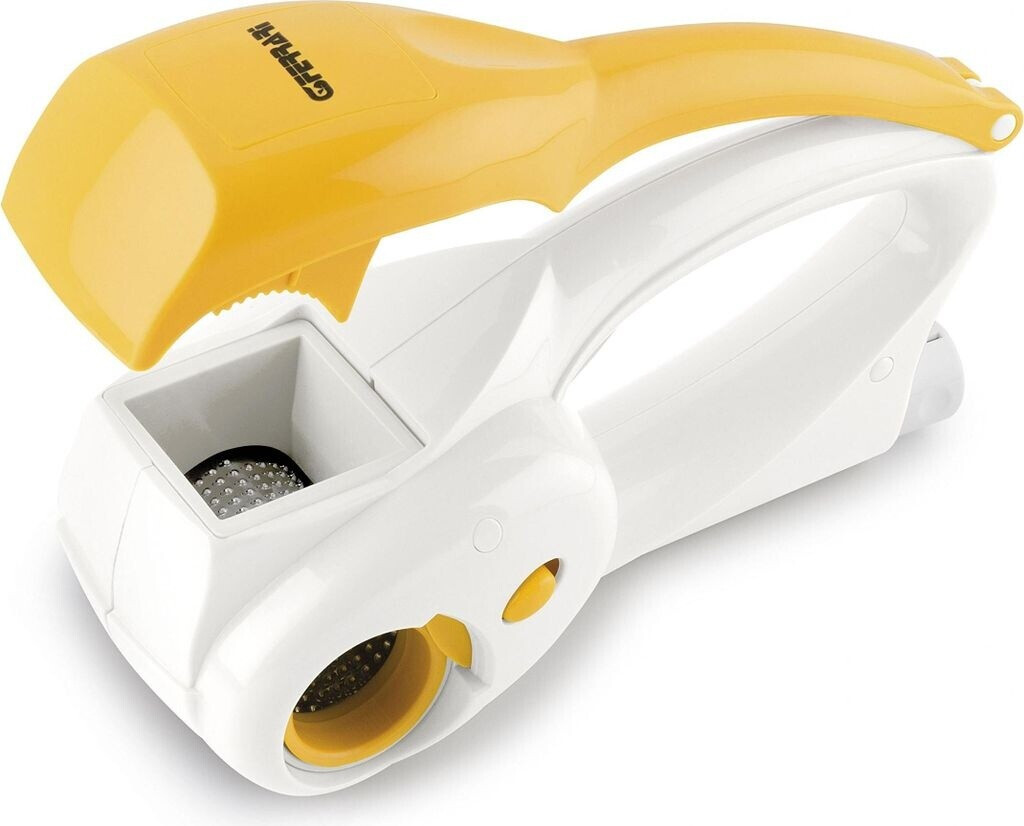 Raffinata ed elegante grattugia ricaricabile con un’impugnatura ergonomica, l’originale PARMINO G3 Ferrari è una grattugia esclusiva per estetica e funzionamento. Con i due rulli intercambiabili è possibile grattugiare formaggi di diversa grana e consistenza a seconda delle necessità. La forza trasmessa al rullo garantisce un funzionamento ottimale anche su frutta e pane secchi, oltre che su formaggi di lunga stagionatura.