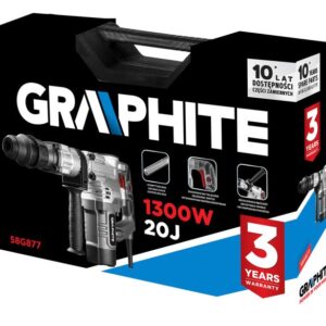 Il martello demolitore SDS Max 1300 W, valigetta 58G877 GRAPHITE è uno strumento specializzato, progettato per lavori di demolizione, offerto in una pratica valigetta con accessori . Sarà indispensabile durante i lavori di ristrutturazione, installazione e demolizione. È dotato di un’elevata potenza di 1300 watt. Lo strumento consente di: