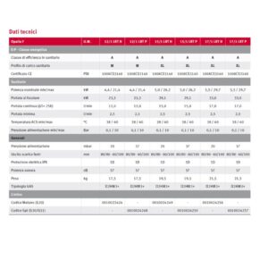 - Temperatura acqua calda sanitaria min/max: 38/60 C°