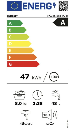 Consumo energetico per 100 cicli 47 kWh
