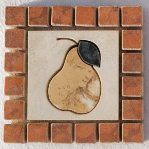 1 pezzo mosaico in marmo naturale Assortiti tozzetto frutta fatti a mano su rete 10×10 spessore 0,75 cm – TAGLIO IDROGETTO – Bordo Rosso