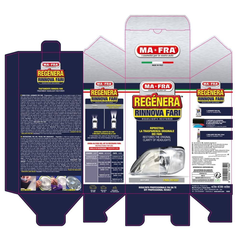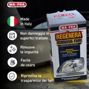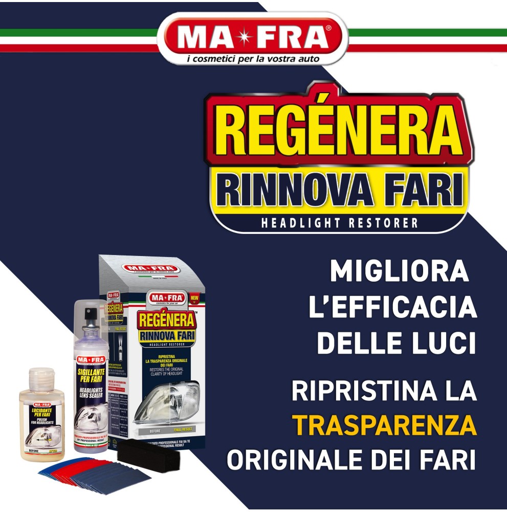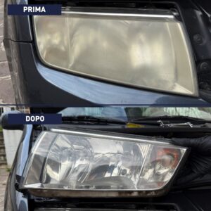 - Applicare il lucidante per fari con 1Shine Esterni, stendere il polish con movimenti circolari, esercitando una discreta pressione e poi rimuovere gli eventuali eccessi con un panno. Ripetere l’operazione di lucidatura fino ad ottenere una superficie trasparente ed uniforme. Applicare il sigillante per fari auto, senza un sigillante adeguato, i fari tornerebbero opachi e gialli in poco tempo. Pulire il faro auto con Glass Cleaner e applicare il sigillante con il panno in microfibra Heavy Work cercando di ottenere un velo omogeneo, stendendolo con movimenti longitudinali. Lasciar asciugare bene e se necessario ripetere l’operazione.