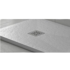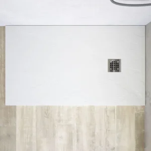 Piatto doccia rettangolare ultra piatto H. da 2,5 a 2,7 cm, in resina minerale, rivestito in gelcoat, con trattamento antibatterico e antiscivolo C3.
