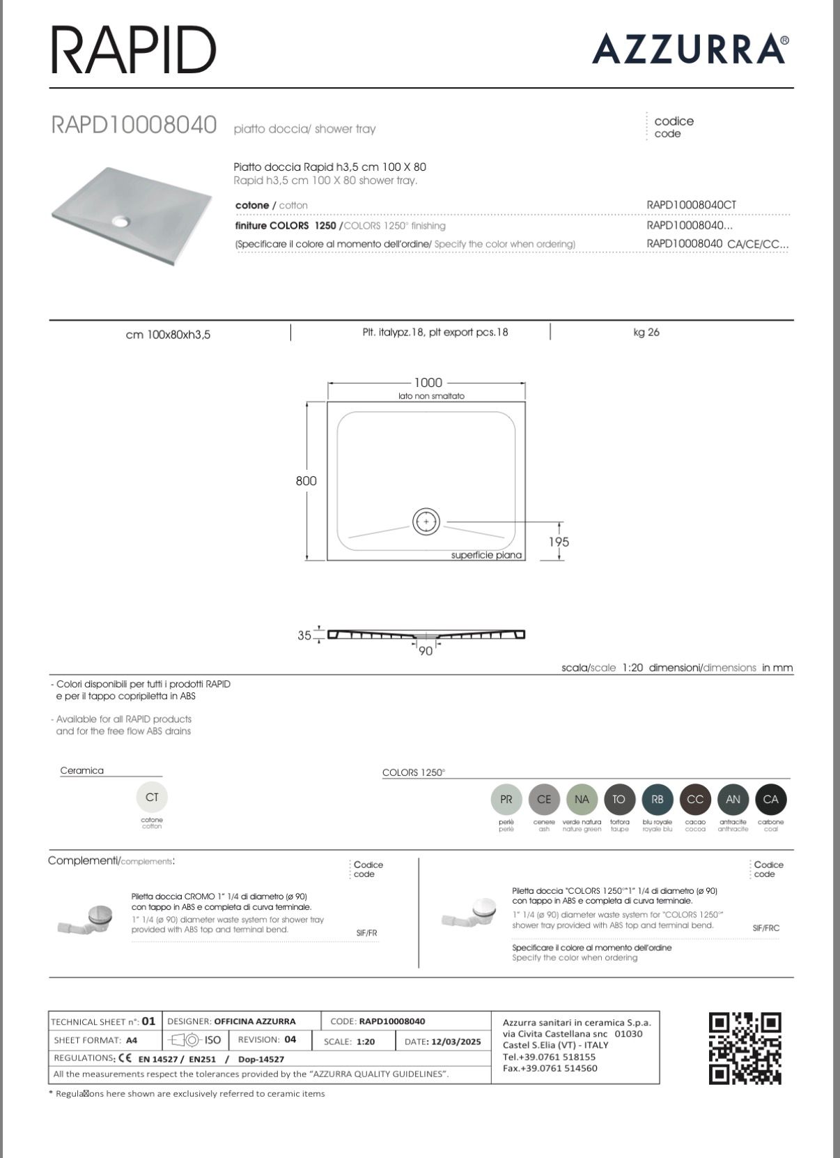 - Tipologia: piatto doccia ultrapiatto RAPID