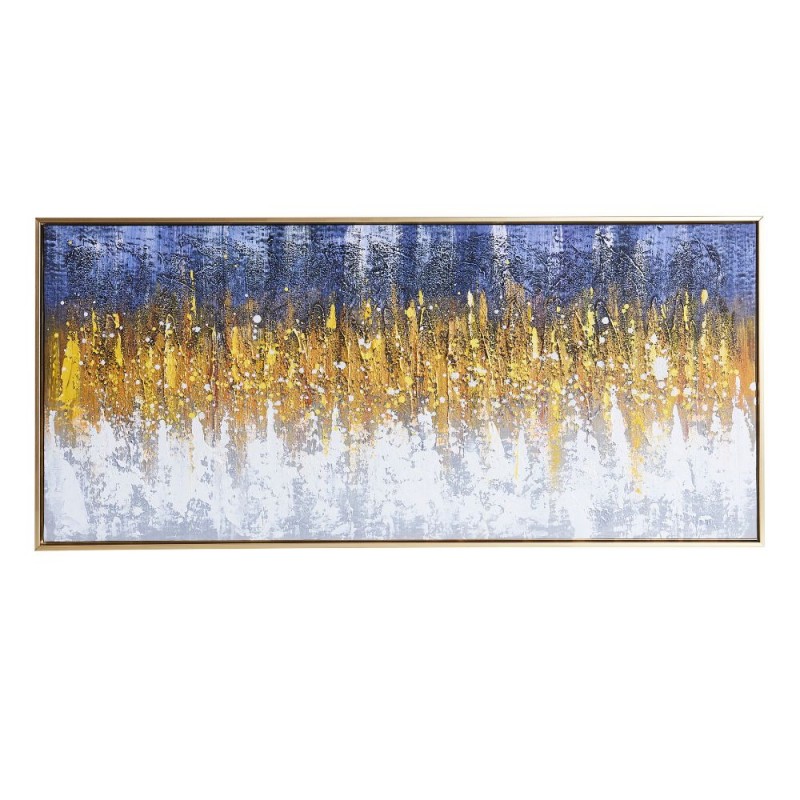 Un’opera astratta che cattura l’intensità del colore e del movimento. Le pennellate dinamiche in giallo, blu e bianco si fondono in un equilibrio perfetto, creando un effetto vibrante e tridimensionale. Ogni dettaglio trasmette forza ed eleganza, donando alla tela un carattere unico e sofisticato. Con le sue dimensioni generose (120×60 cm) e la cornice oro in polipropilene, questo dipinto è perfetto per arricchire ambienti moderni e contemporanei. Un pezzo d’arte capace di trasformare qualsiasi spazio in un luogo di espressione e stile.