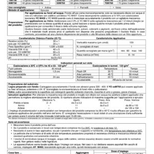Per applicazione su Vetro: Addizionare con il 2% di YC M419 sotto agitazione meccanica per 1-2 minuti (meglio se premiscelato con la stessa quantità di acqua), quindi lasciare a riposo qualche minuto il prodotto prima della applicazione per consentire il rilascio della schiuma inglobata.