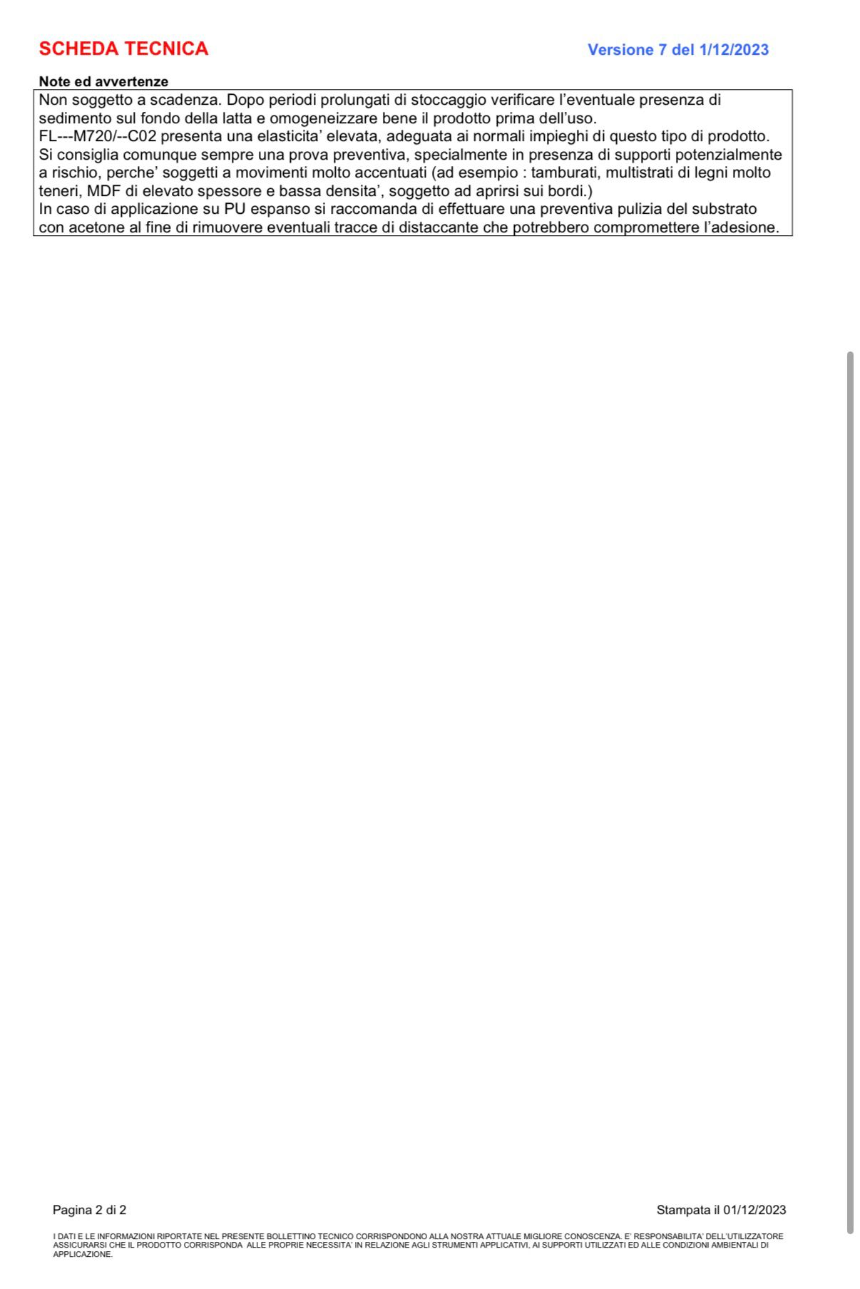- Elevato contenuto di pigmento bianco.