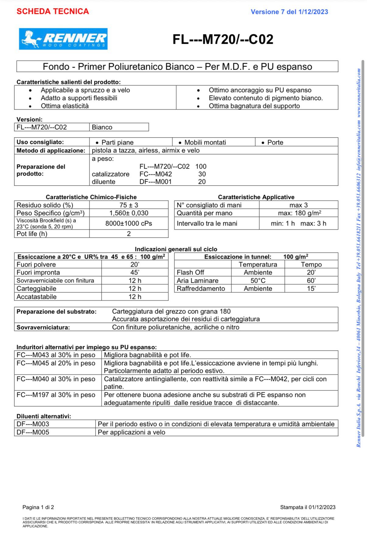 RENNER PRIMER FONDO BIANCO 25LT ART. FL M720/C02-54