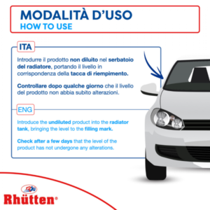 Modalità d’uso: inserire il prodotto tal quale nella vaschetta del liquido radiatore.