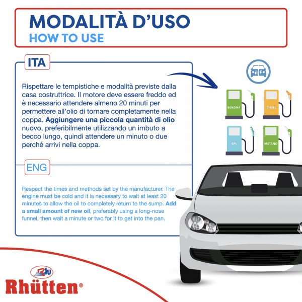 Modalità d’uso: Per il cambio olio: rispettare tempistiche e modalità previste dalla casa costruttrice.
