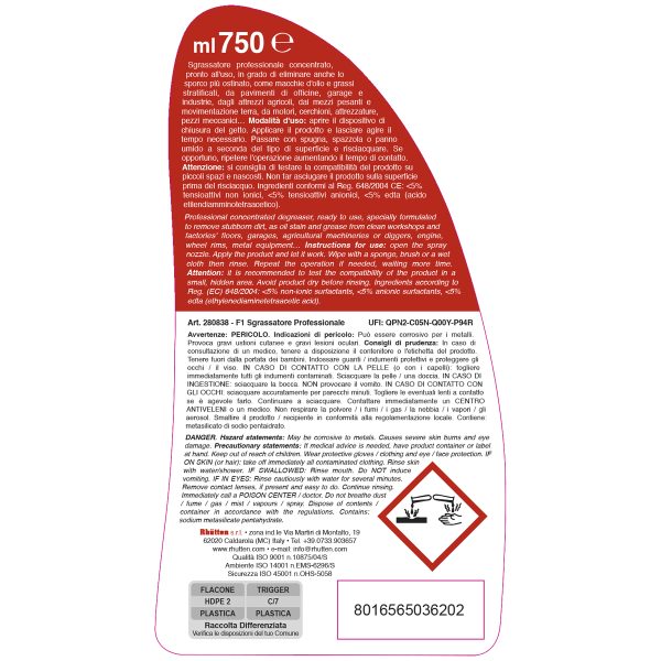 RHUTTEN SGRASSATORE PROFESSIONALE PER AUTO F1 750ML