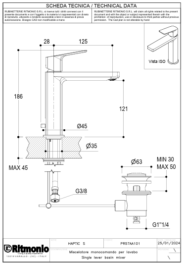 RITMONIO MISCELATORE LAVABO HAPTIC S  CROMO LUCIDO COMPLETO PR57AA101CRLRITMONIO MISCELATORE LAVABO HAPTIC S CROMO LUCIDO COMPLETO PR57AA101CRL
