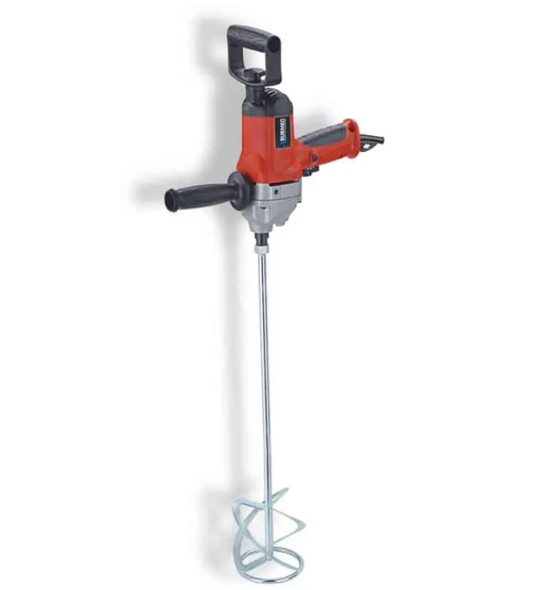 Potente e compatto con doppio isolamento. Motore a 1 marcia con variatore elettronico della velocità di rotazione. Dotato di interruttore elettronico e di impugnatura tripla. Attacco sia M14 che esagonale applicando il mandrino in dotazione. Monta mescolatori fino a Ø mm. 120. Completo di 3 mescolatori