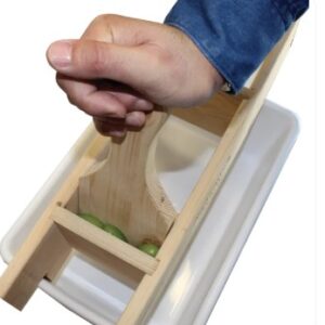 Permette di schiacciare velocemente le olive senza sporcare e senza danneggiarne il nocciolo.