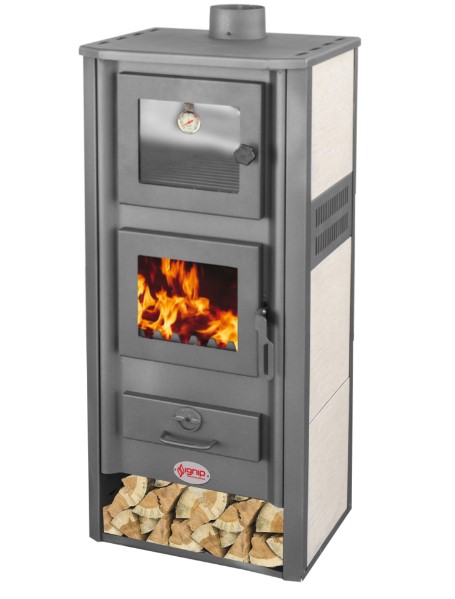 La stufa a legna Roma grazie ai suoi 12 kW di potenza è la stufa ideale per riscaldare grandi ambienti con la praticità e l’economicità della legna. La stufa è impreziosita dal rivestimento laterale in ceramica di colore Avorio che la rende moderna ed elegante. La stufa è inoltre dotata di un efficiente forno dotato di termometro per il controllo della temperatura, per poter cucinare le tue pietanze in tutta tranquillità. La stufa è fabbricata in Europa rispettando i massimi standard qualitativi.