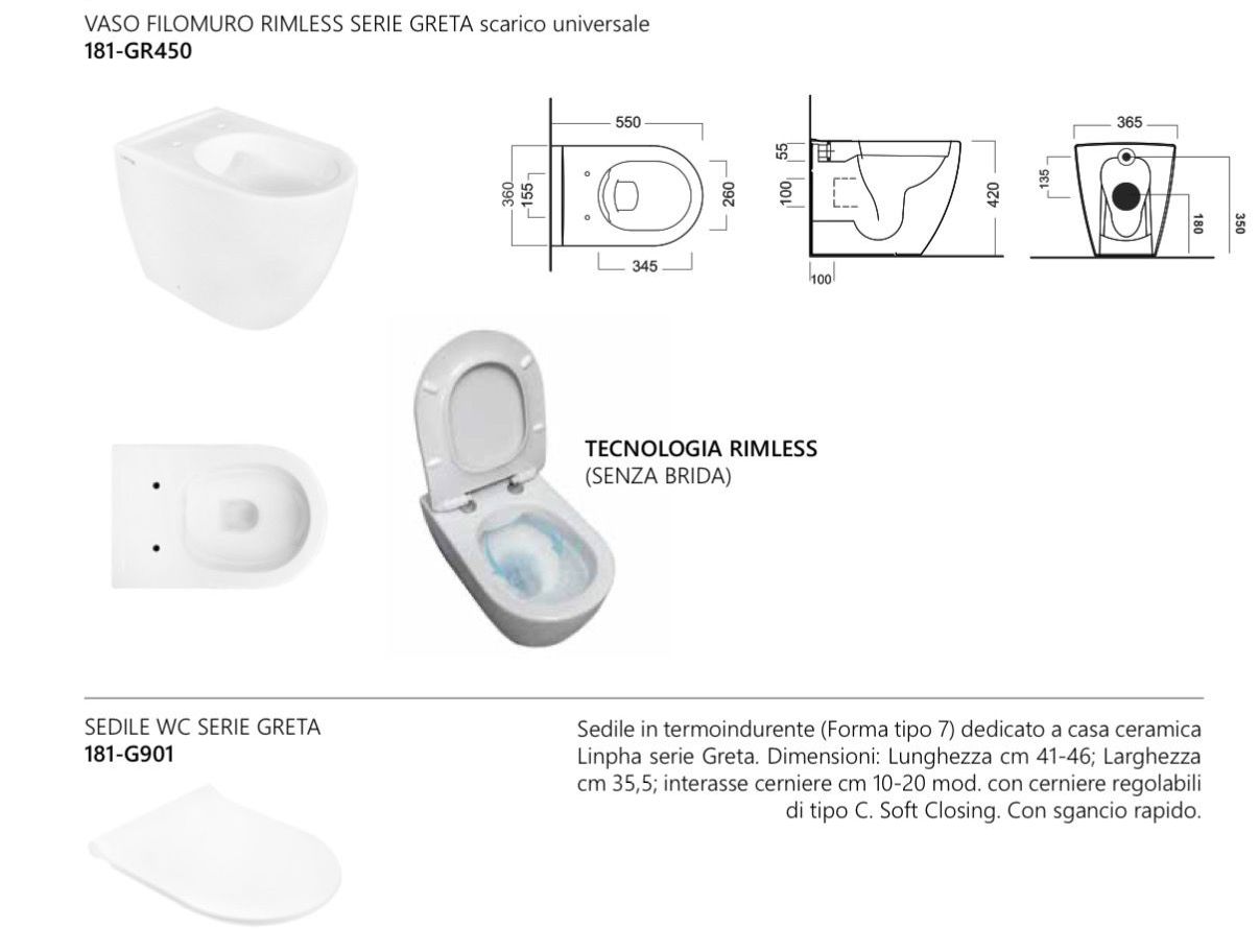 Il Vaso WC Filo Muro Greta Rimless 181-GR450-BM è una soluzione di alto livello per ambienti bagno moderni ed eleganti. Il design filo muro garantisce una perfetta continuità con la parete, offrendo un’estetica pulita e ordinata e facilitando la pulizia del pavimento.