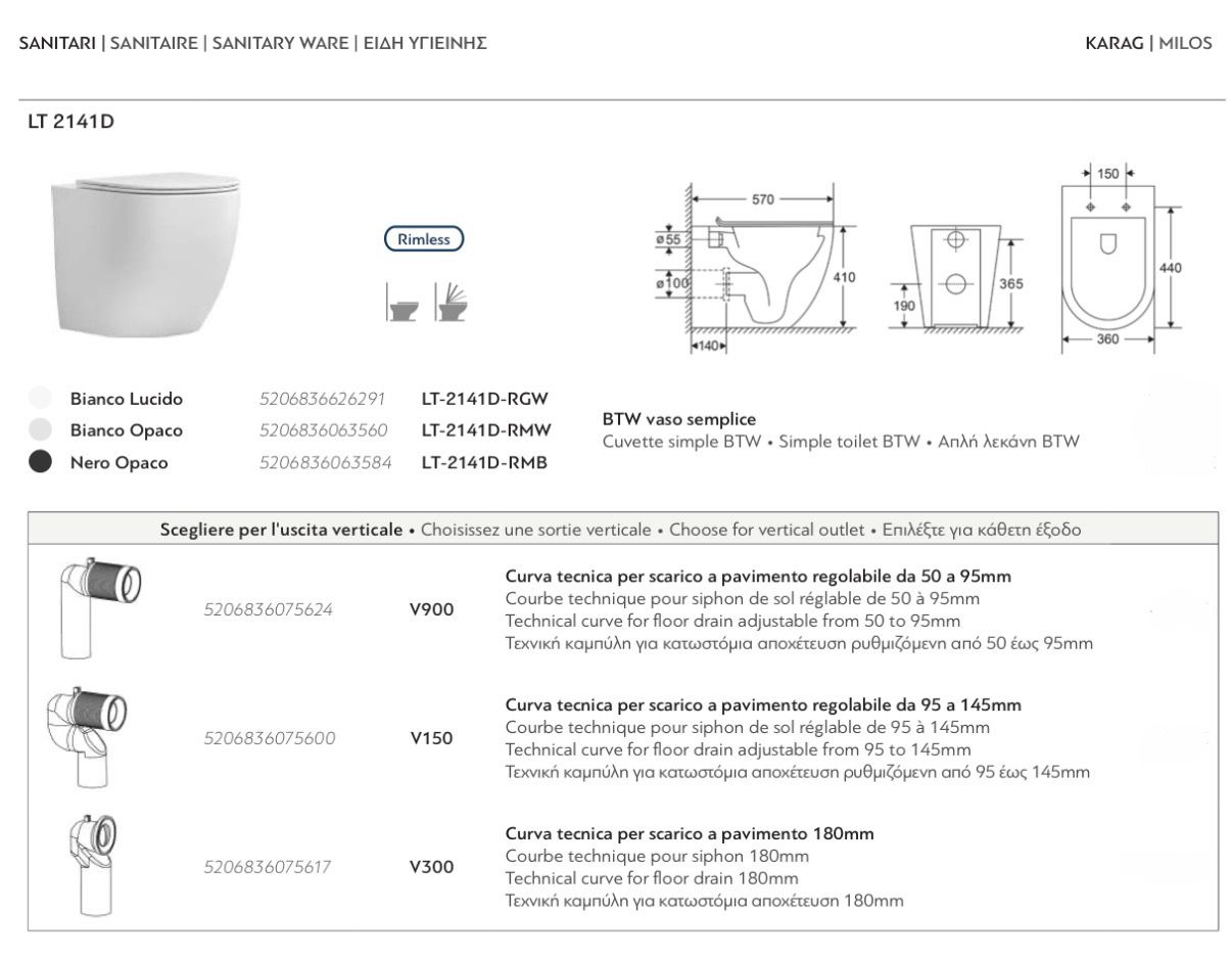 N.B. Coprivaso non compreso, acquistabile separatamente: https://www.grecoegrana.it/prodotto/copriwater-milos-nero-opaco-frizionato-a-terra/