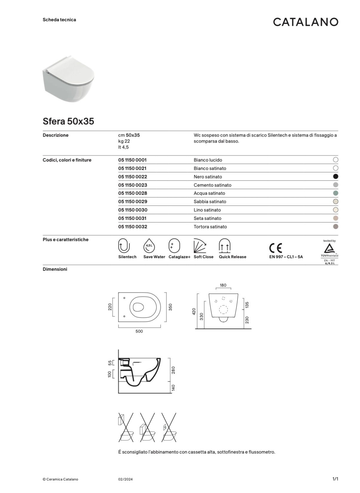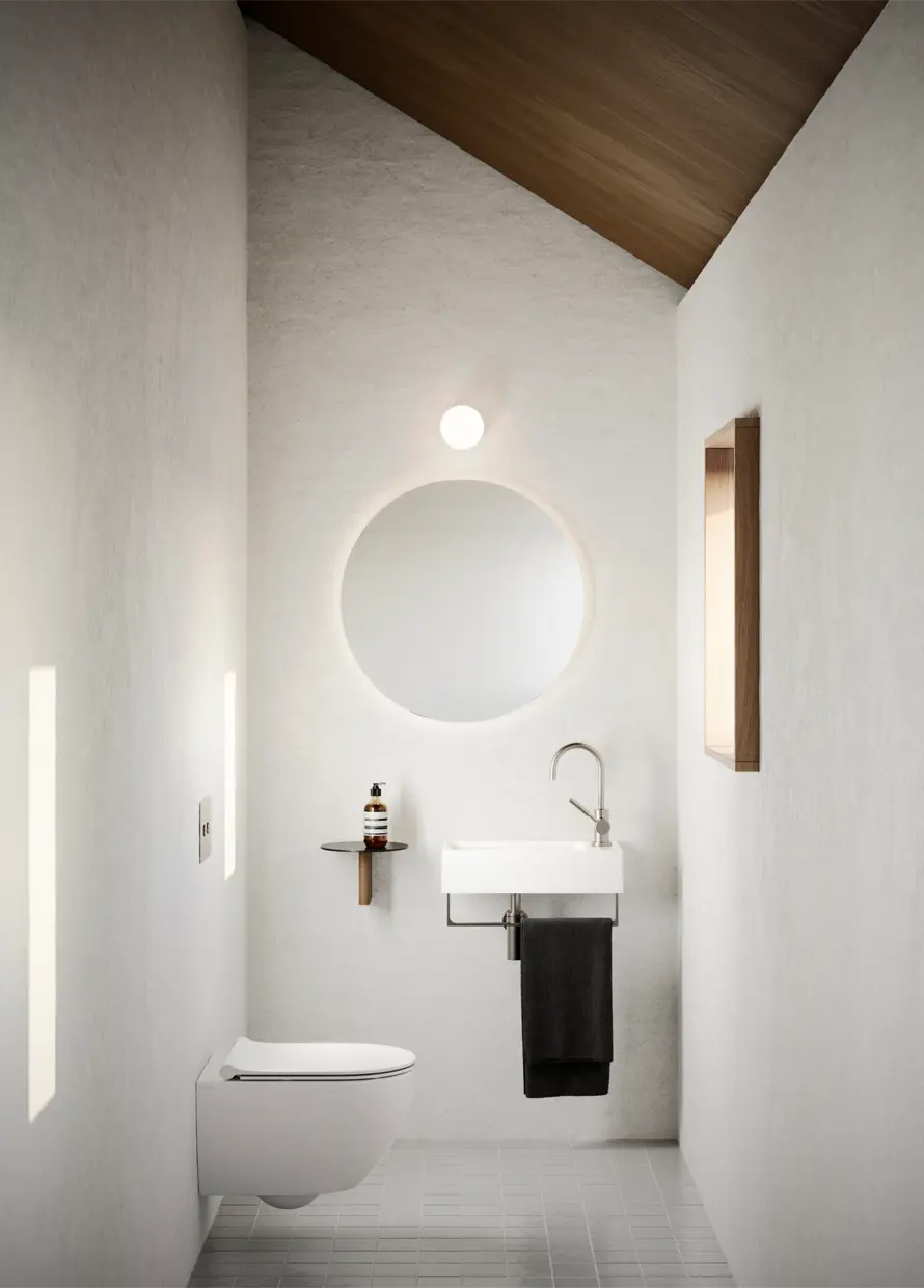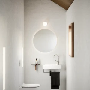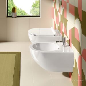 La configurazione sospesa conferisce leggerezza visiva all’ambiente e facilita la pulizia del pavimento, migliorando comfort e praticità quotidiana. La finitura bianco lucido valorizza le forme armoniose della collezione Sfera, garantendo un’estetica elegante e senza tempo.