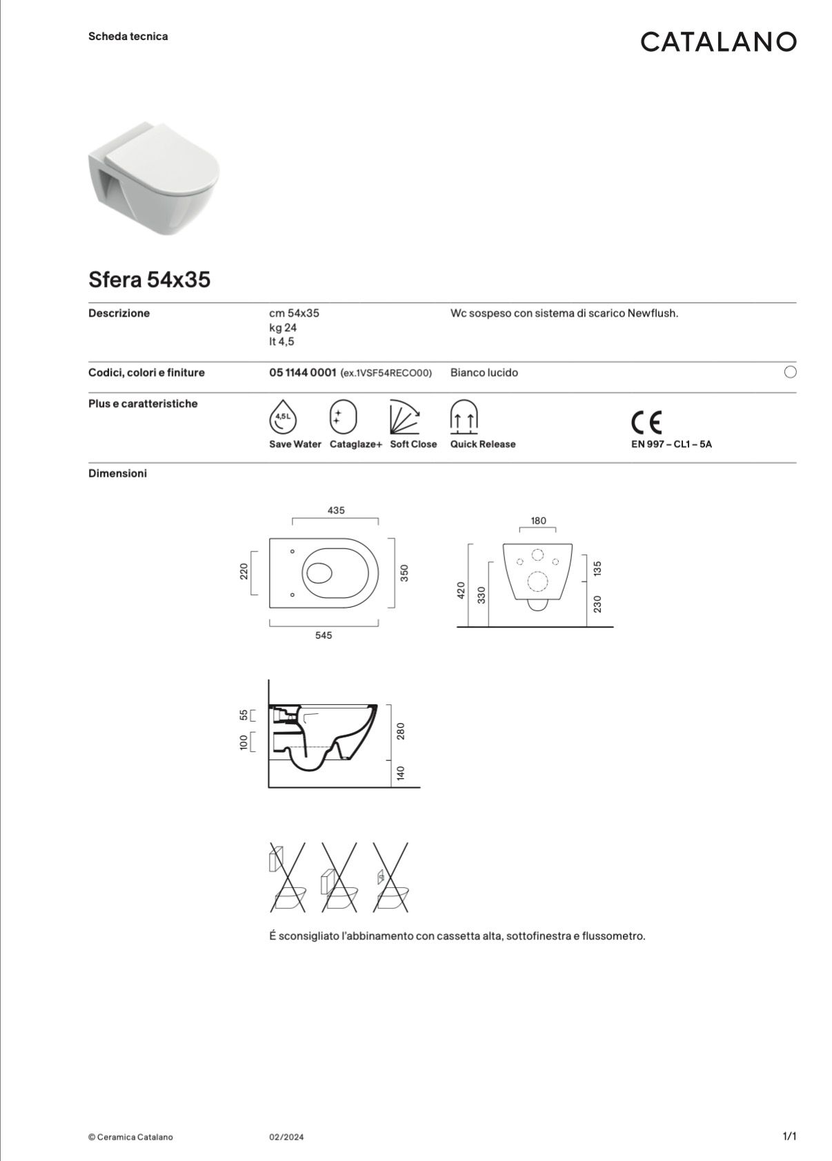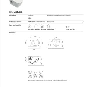 Il Vaso WC Sospeso Sfera 54 New Flush 1VSF54A00 rappresenta una soluzione moderna e compatta, pensata per ambienti bagno contemporanei che richiedono elevati standard di igiene, design e funzionalità. Il formato 54 cm lo rende ideale anche per spazi ridotti, senza rinunciare al comfort.