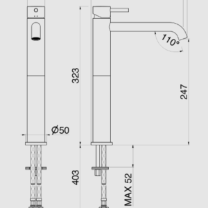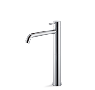 Miscelatore monocomando versione alta per lavabo da appoggio, senza scarico.