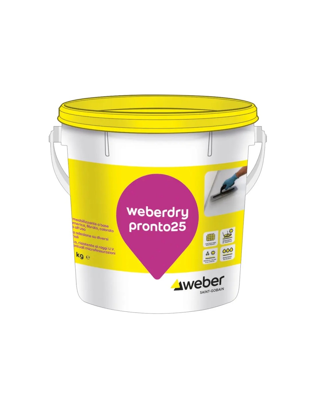 weberdry pronto25 è indicato per impermeabilizzare e proteggere terrazze, cornicioni, coperture edili in genere, muri di fondazione, muri contro terra, camini, vasche in cls di dimensioni contenute non destinate al contenimento di acque potabili o aggressive. Realizza impermeabilizzazioni durature e resistenti ad agenti atmosferici e ai raggi UV. Le superfici trattate sono resistenti ai ristagni d’acqua anche in assenza di pendenza e resistenti al traffico pedonabile domestico. Idoneo